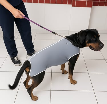 Nossa roupa cirúrgica unissex é ideal para cães de todos os sexos, oferecendo conforto e proteção durante a recuperação pós-cirúrgica. Feita com materiais leves e respiráveis, ela impede que o pet lamba a área da cirurgia e protege contra infecções, garantindo um processo de recuperação mais tranquilo.