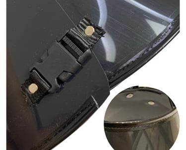 Nossos colares elizabetanos são todos costurados para maior durabilidade e resistência. Fizemos isso para evitar que o vivo solte, e fique apenas o plástico podendo causar desconforto em seu pet.